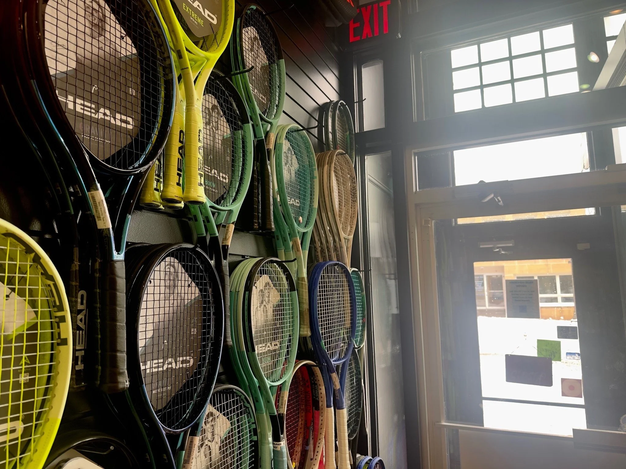 Come shop and relax in our special environment, complete with exposed brick walls, original wood floors, loft-high ceilings, big screen HDTV and our stringing bar – offering a great view of it all.